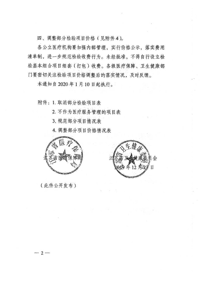 附件:關于轉發《江蘇省醫療保障局 江蘇省衛生健康委員會關于取消、規范、調整公立醫療機構部分檢驗項目價格的通知》的通知